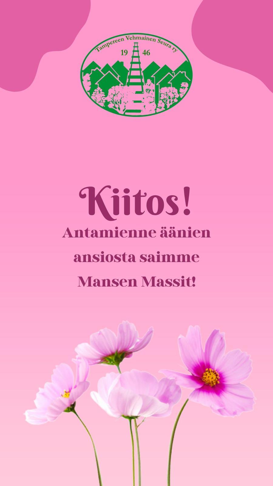 Mansen Massi -rahaa saatiin Vehmaisiin 5000 e 167 äänellä!